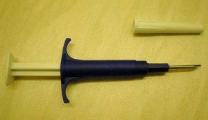 Εικόνα 1: Μικροτσίπ Εικόνα 2: Σύριγγα εμφύτευσης μικροτσίπ