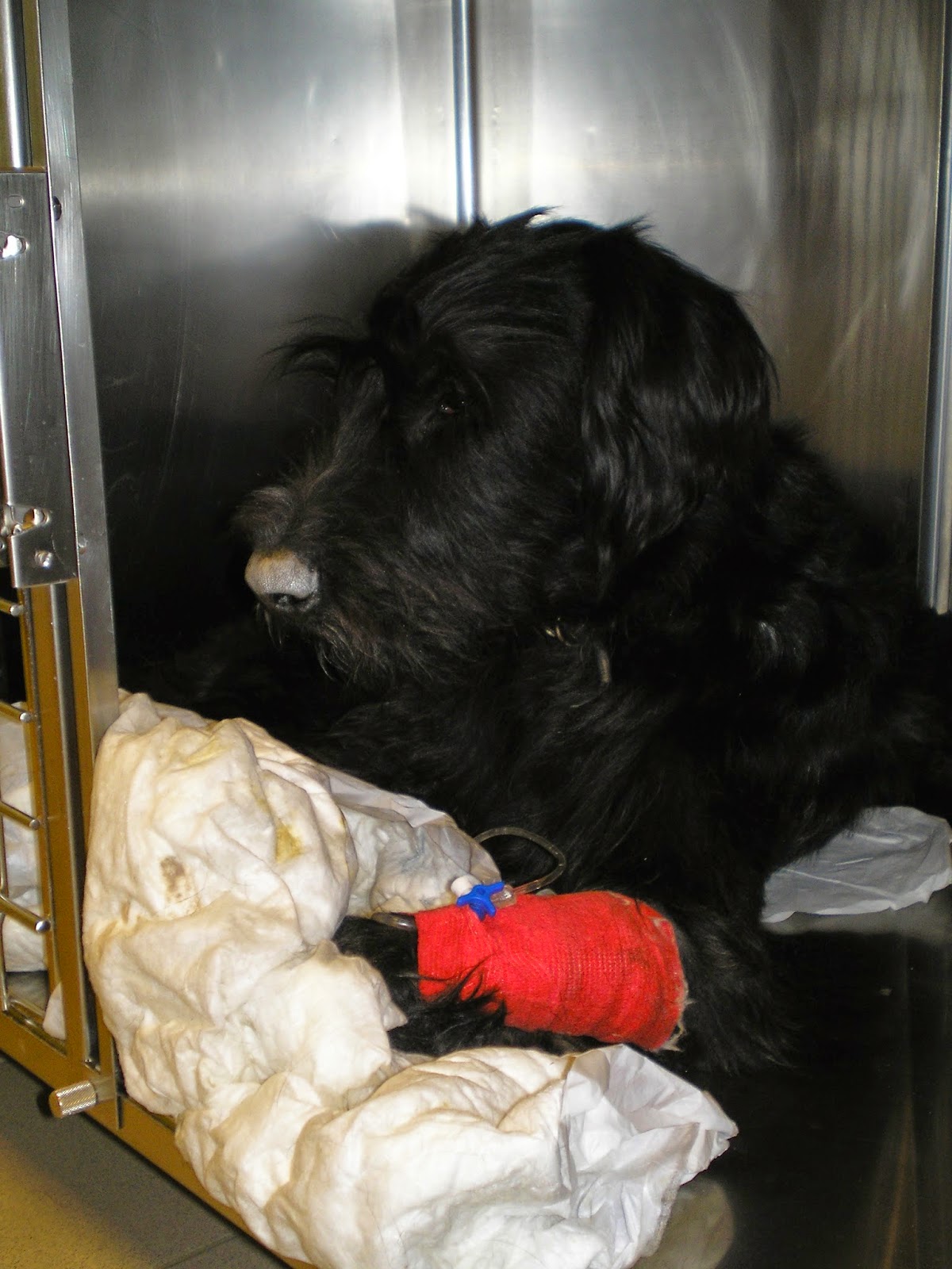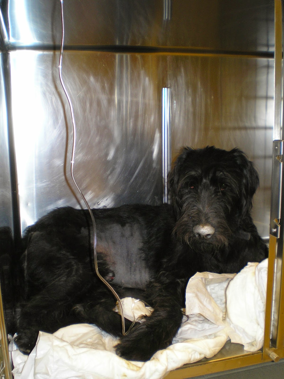 Σνάουζερ γιγαντόσωμης, ηλικίας 2 ετών, ο οποίος παρουσίαζε κατάπτωση, ανορεξία και εμέτους. Το μπαλάκι είχε καταποθεί περίπου 5 ημέρες πριν την επέμβαση και είχε προκαλέσει